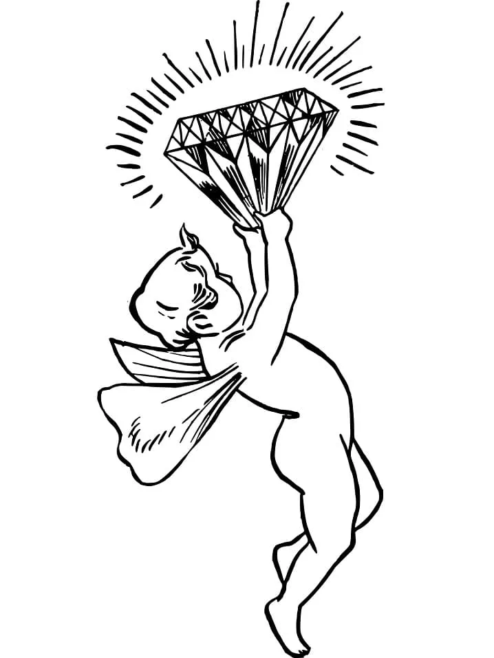 : Druckbar herunterladen Amor mit Diamant Malvorlage