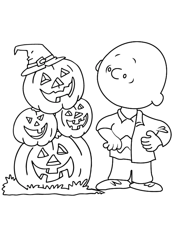 : Druckbar herunterladen Charlie Brown und Monsterkürbis Malvorlage