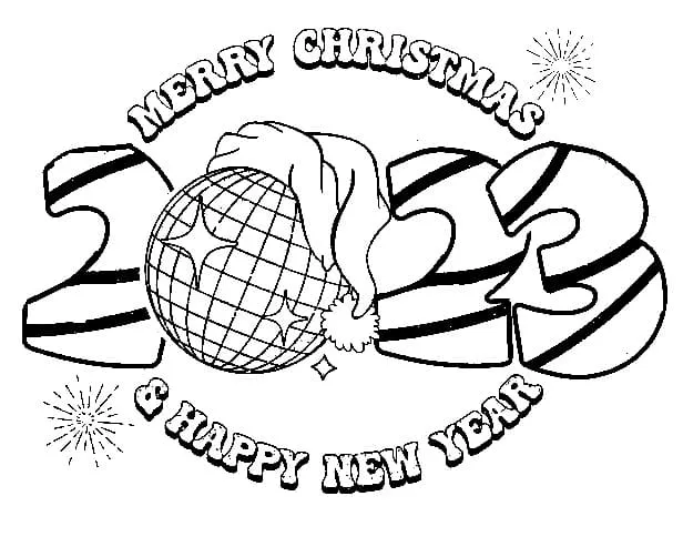 Beschreibung der Färbung : Druckbar herunterladen Frohe Weihnachten und einen guten Rutsch ins neue Jahr 2023 Malvorlage
