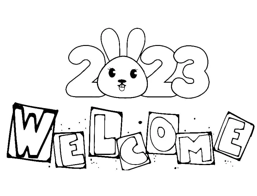 : Druckbar herunterladen Willkommensjahr 2023 Malvorlage
