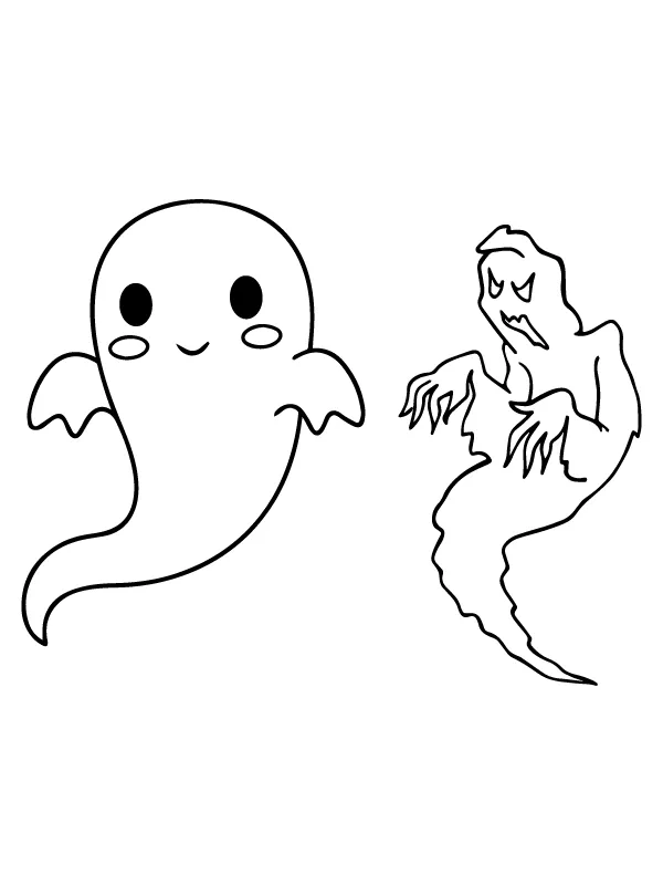 : Druckbar herunterladen Gruseliger Geist & Freundlicher Geist Malvorlage