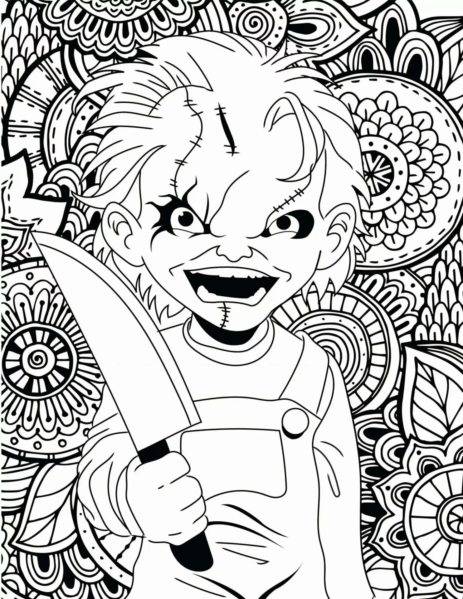 Klicken Sie auf die Schaltfläche Böser Chucky Malvorlagen, um die Druckversion anzuzeigen oder online auszumalen (kompatibel mit iPad und Android-Tablets).