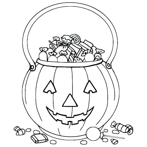 : Druckbar herunterladen Süßes oder Saures Kürbisbeutel Malvorlage