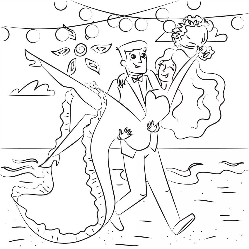 : Druckbar herunterladen Glückliches Brautpaar Malvorlage