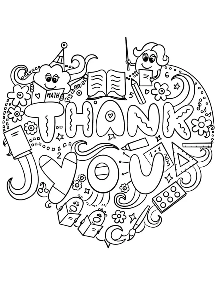 : Druckbar herunterladen Danke, Lehrer Doodle Malvorlage
