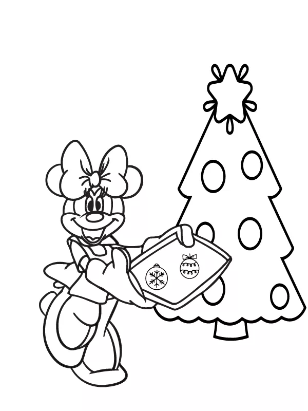 : Druckbar herunterladen Fröhliche Minnie Maus Weihnachten Malvorlage