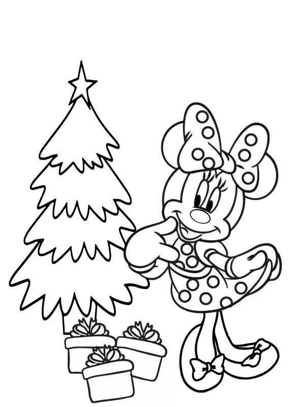 : Druckbar herunterladen Fröhliche Minnie Maus Weihnachten Malvorlage