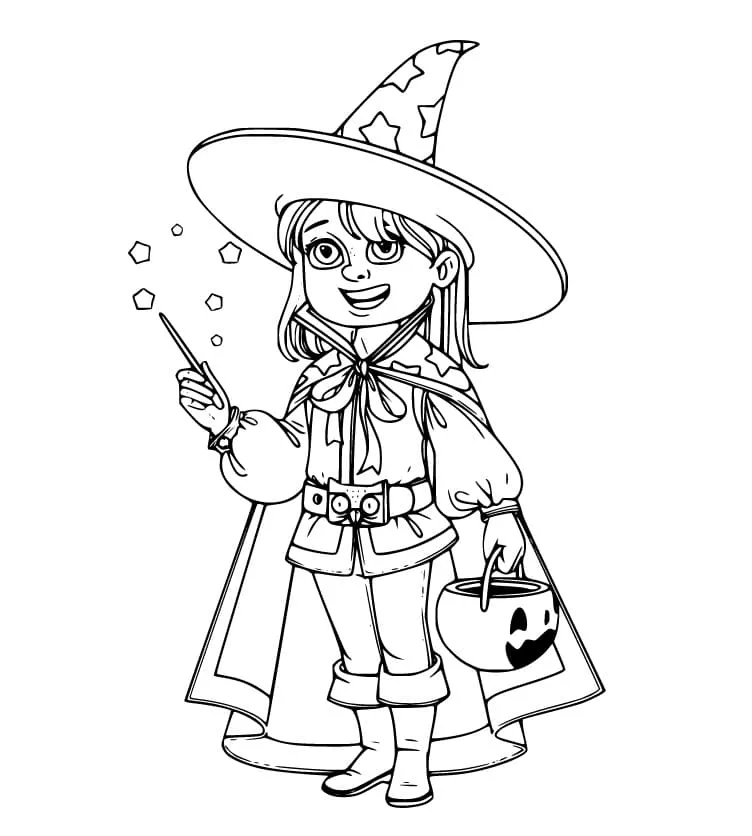 : Druckbar herunterladen Niedliches Zauberer Kostüm Malvorlage