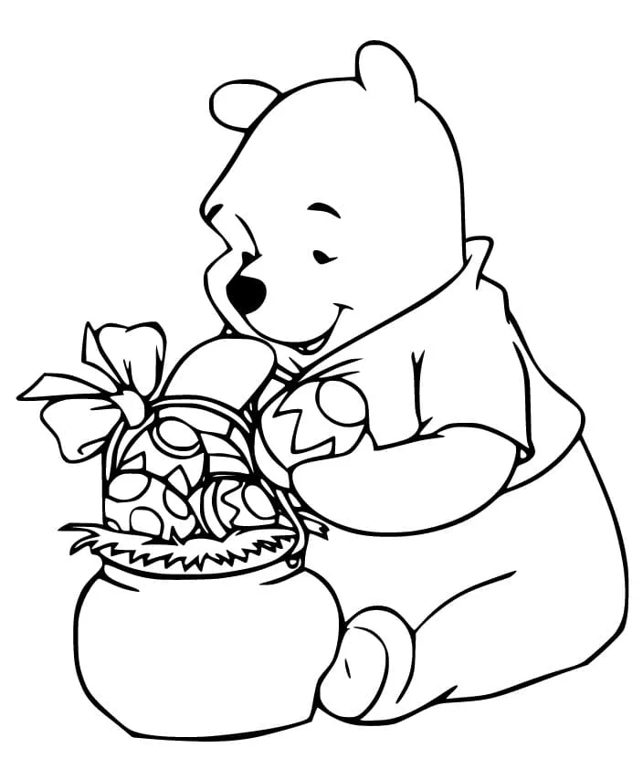 : Druckbar herunterladen Winnie Puuh mit Osterkörbchen Malvorlage