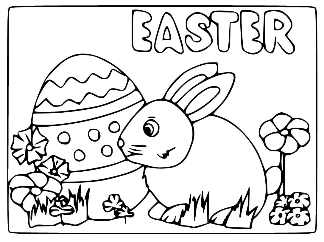 : Druckbar herunterladen Niedliche Osterhasenkarte Malvorlage