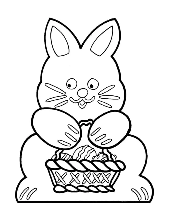 : Druckbar herunterladen Hase mit Osterkörbchen Malvorlage
