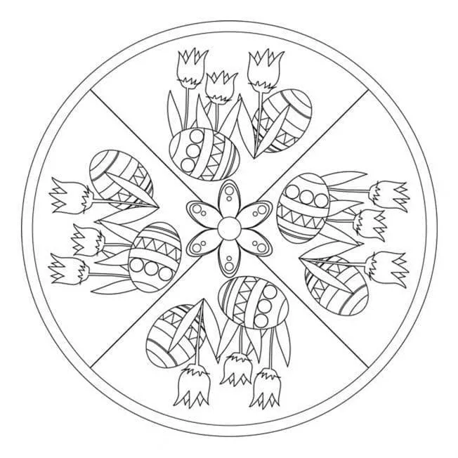 : Druckbar herunterladen Blumen Ostermandala Malvorlage