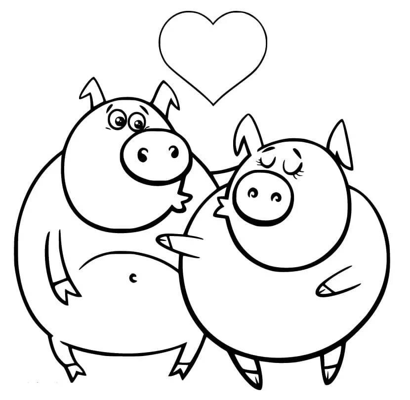 : Druckbar herunterladen Schweine-Pärchen Malvorlage