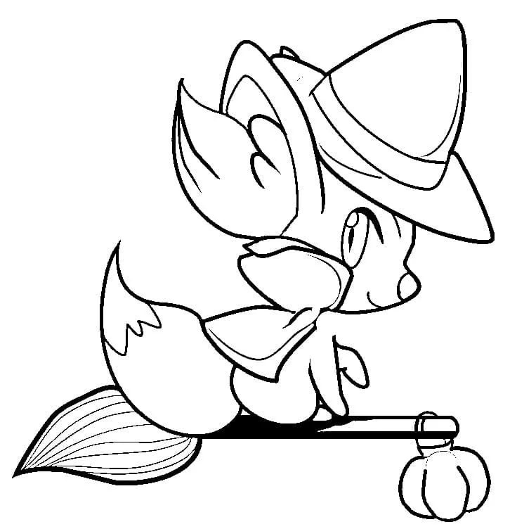 : Druckbar herunterladen Fennekin Pokemon Halloween Malvorlage