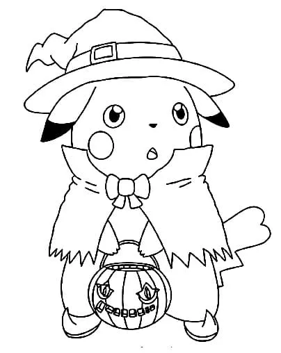 : Druckbar herunterladen Niedliches Halloween-Pikachu Malvorlage