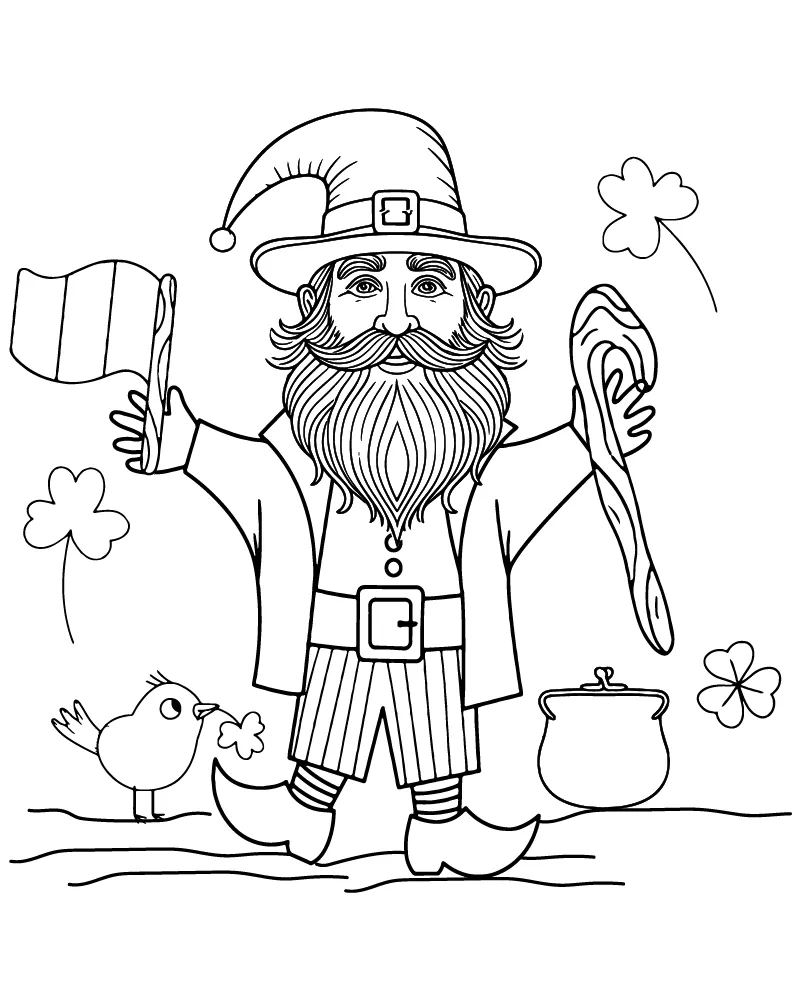 : Druckbar herunterladen Leprechaun feiert Malvorlage