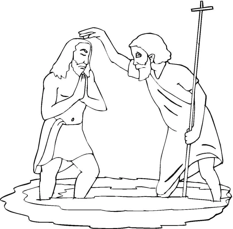 : Druckbar herunterladen Johannes tauft Jesus Malvorlage