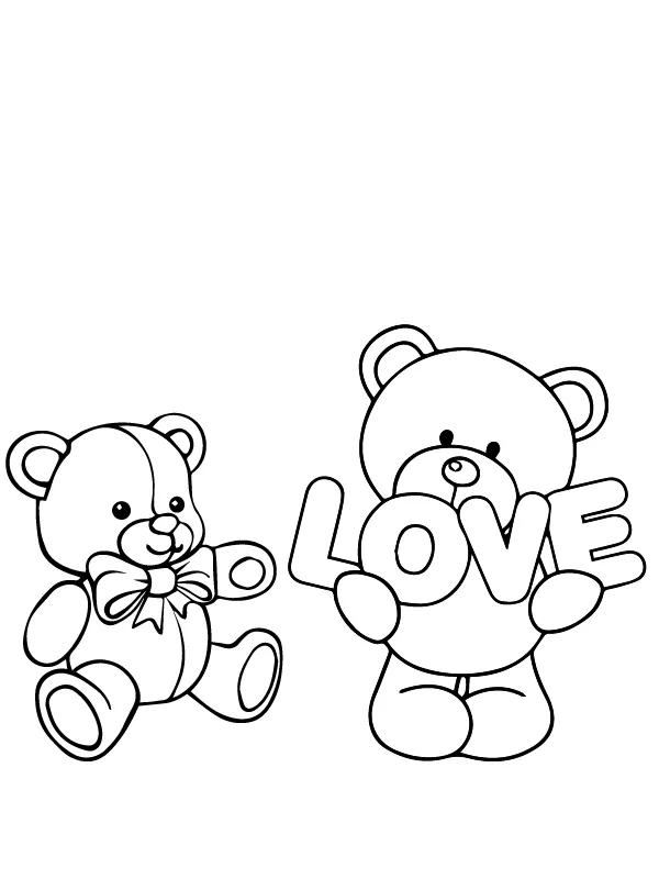 Beschreibung der Färbung : Druckbar herunterladen Niedlicher Teddybär mit Liebestext Valentinstag Malvorlage