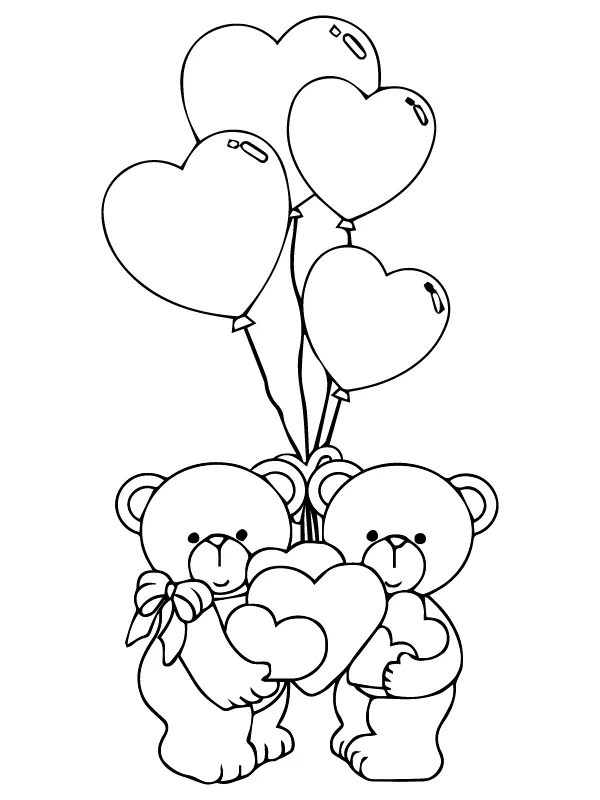 : Druckbar herunterladen Teddybär mit Liebesballon Valentinstag Malvorlage