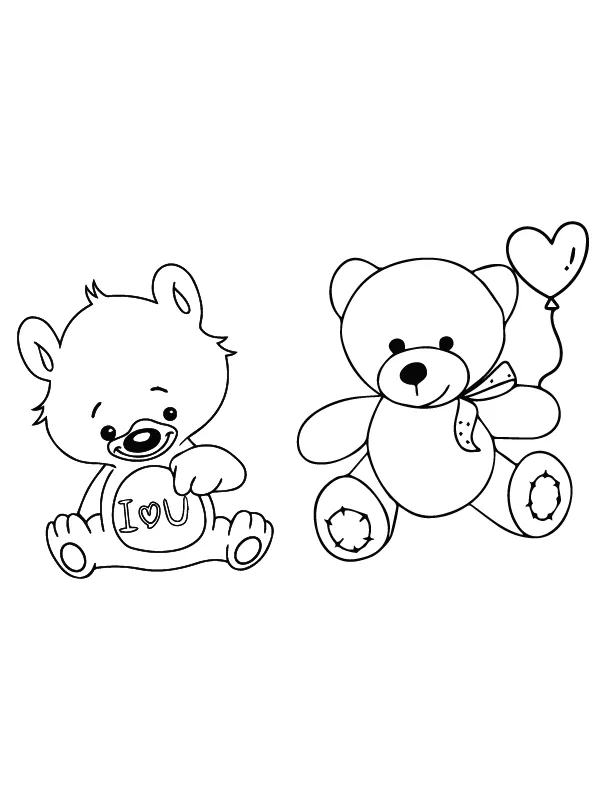 Beschreibung der Färbung : Druckbar herunterladen Kostenlos druckbarer Teddybär Valentinstag Malvorlage