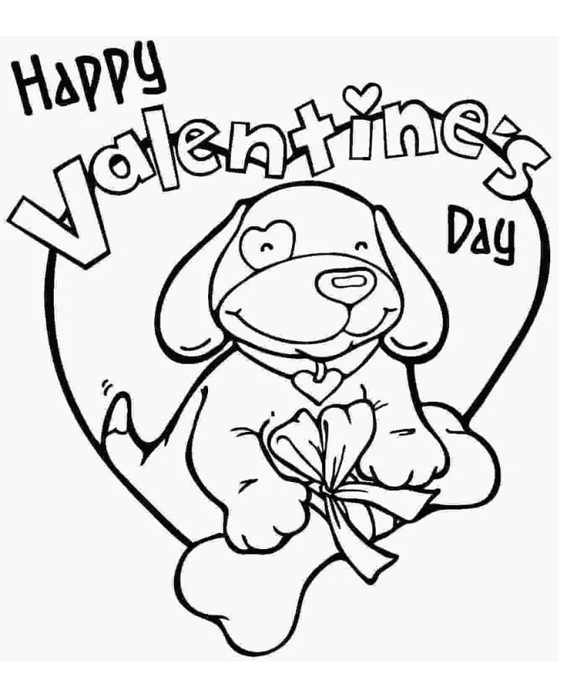 : Druckbar herunterladen Welpe mit Valentinstag Malvorlage