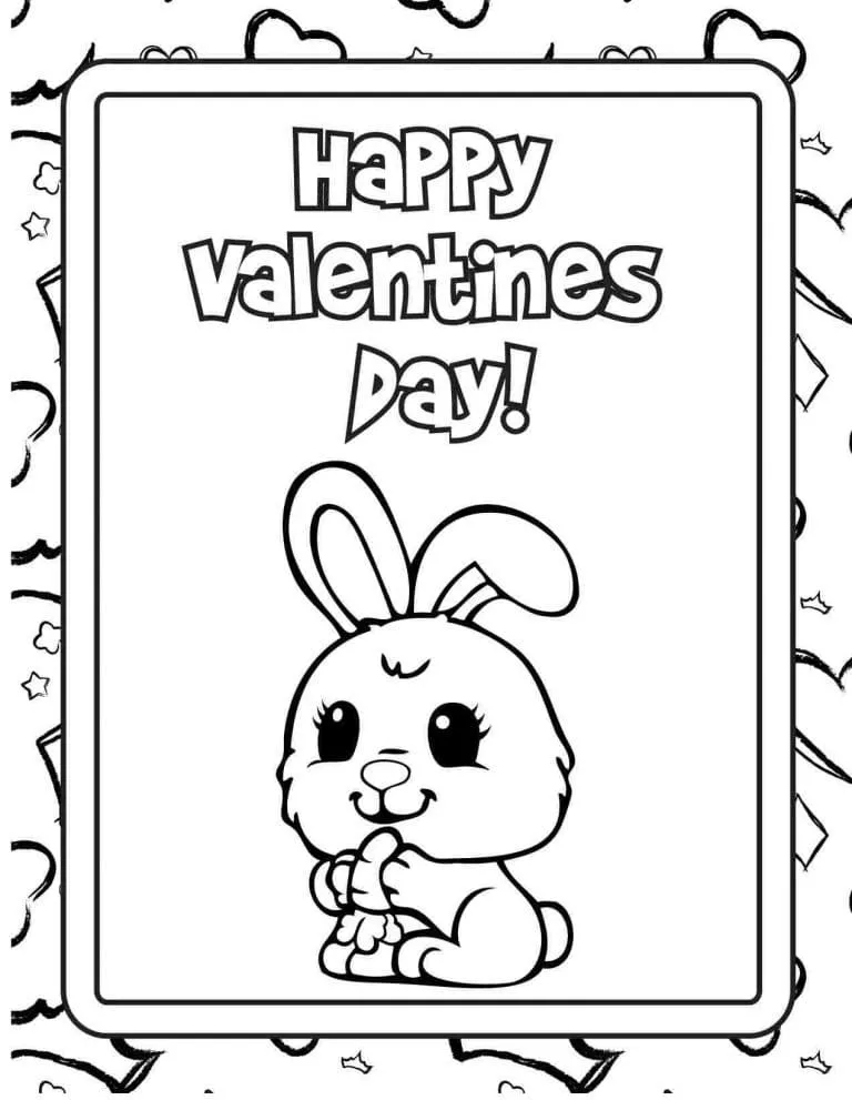 : Druckbar herunterladen Valentinskarte mit Hase Malvorlage