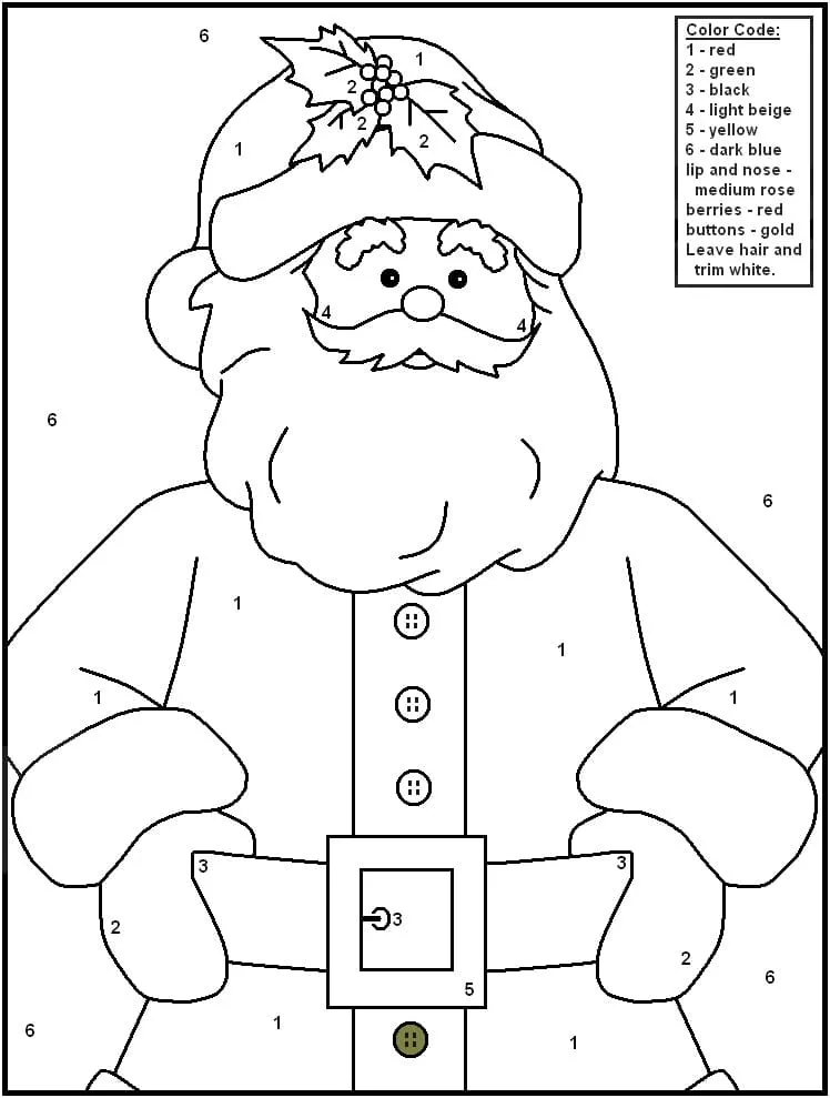 Beschreibung der Färbung : Druckbar herunterladen Weihnachtsweihnachtsmann Malen nach Zahlen Malvorlage