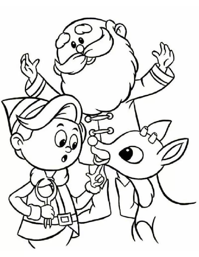 : Druckbar herunterladen Elfen, Weihnachtsmänner und Rentiere Malvorlage