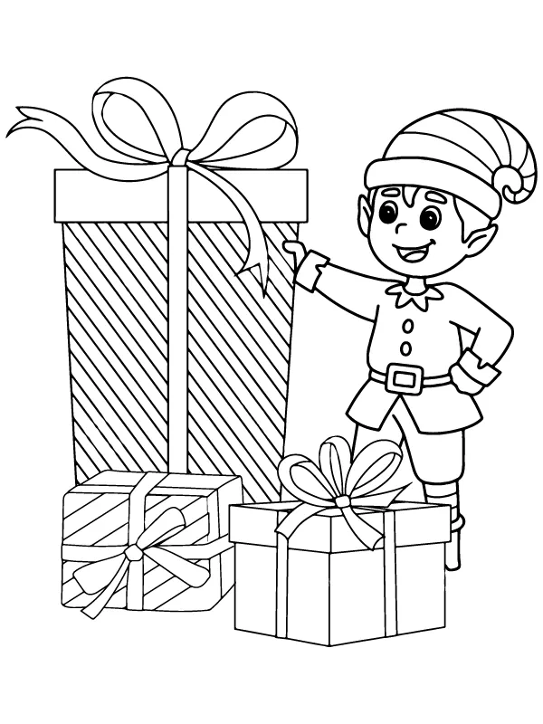 Weihnachtself und viele Geschenke