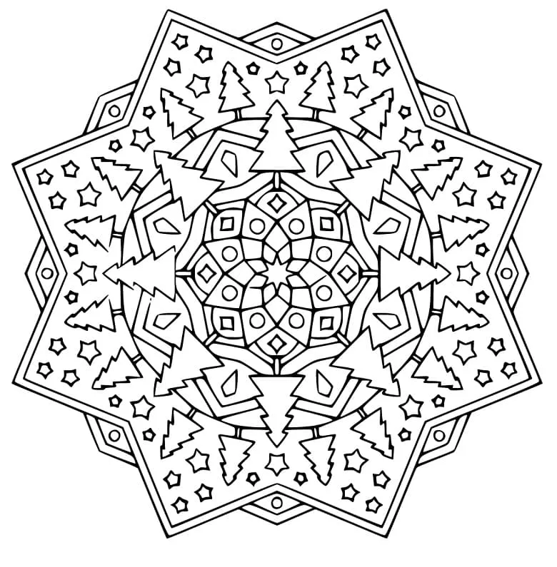: Druckbar herunterladen Weihnachten Mandala 32 Malvorlage