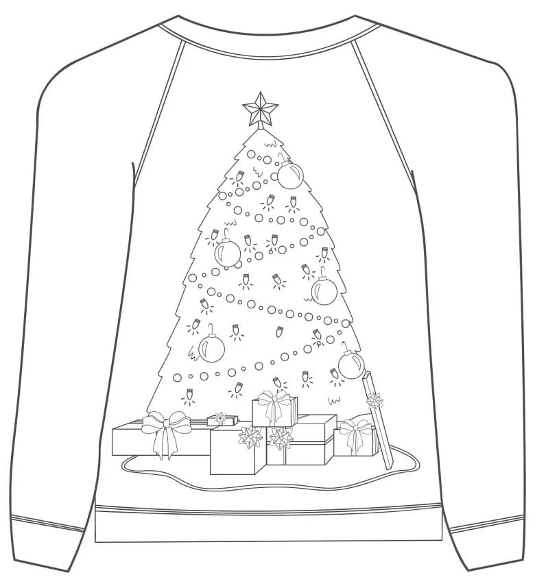: Druckbar herunterladen Weihnachtspullover zum Ausdrucken Malvorlage