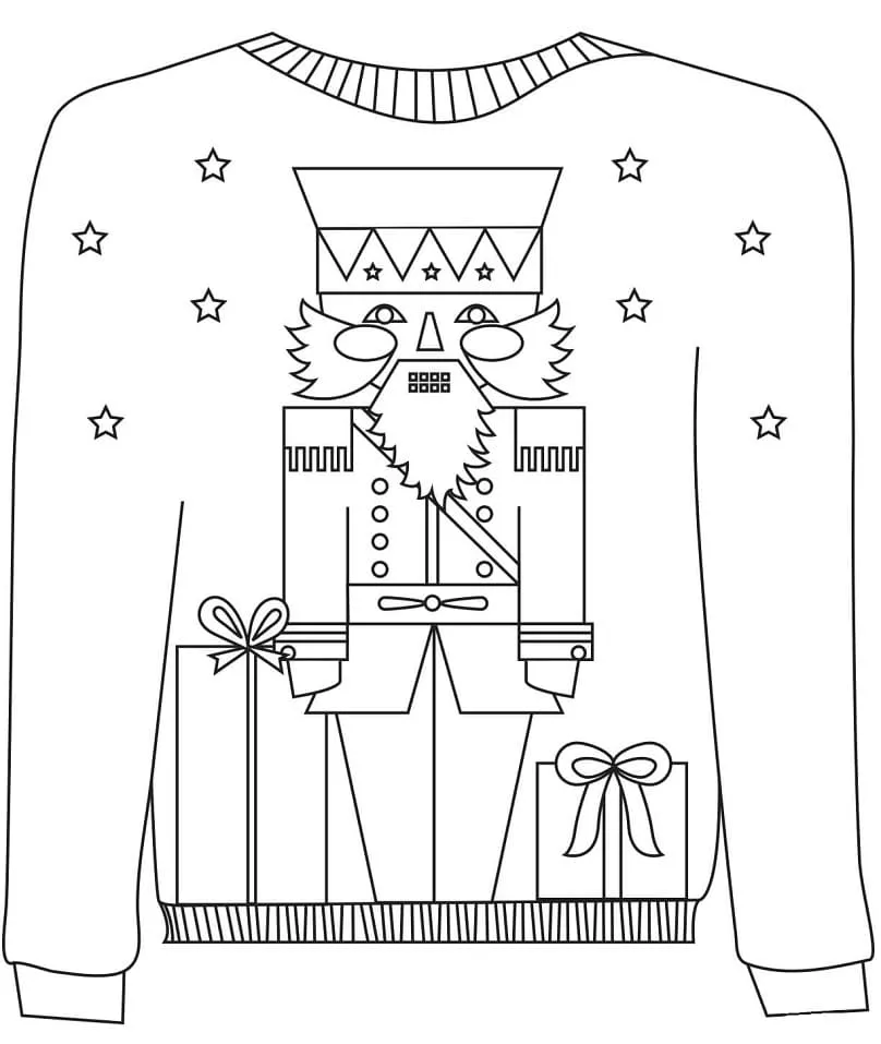 : Druckbar herunterladen Weihnachtspullover mit Nussknacker Malvorlage