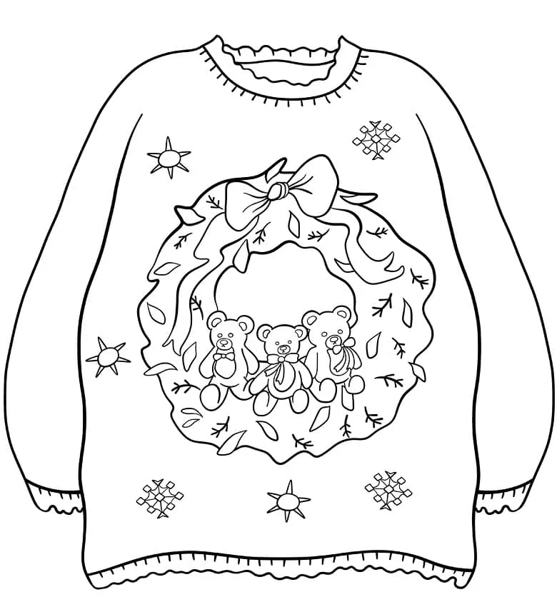 : Druckbar herunterladen Weihnachtspullover mit Kranz Malvorlage