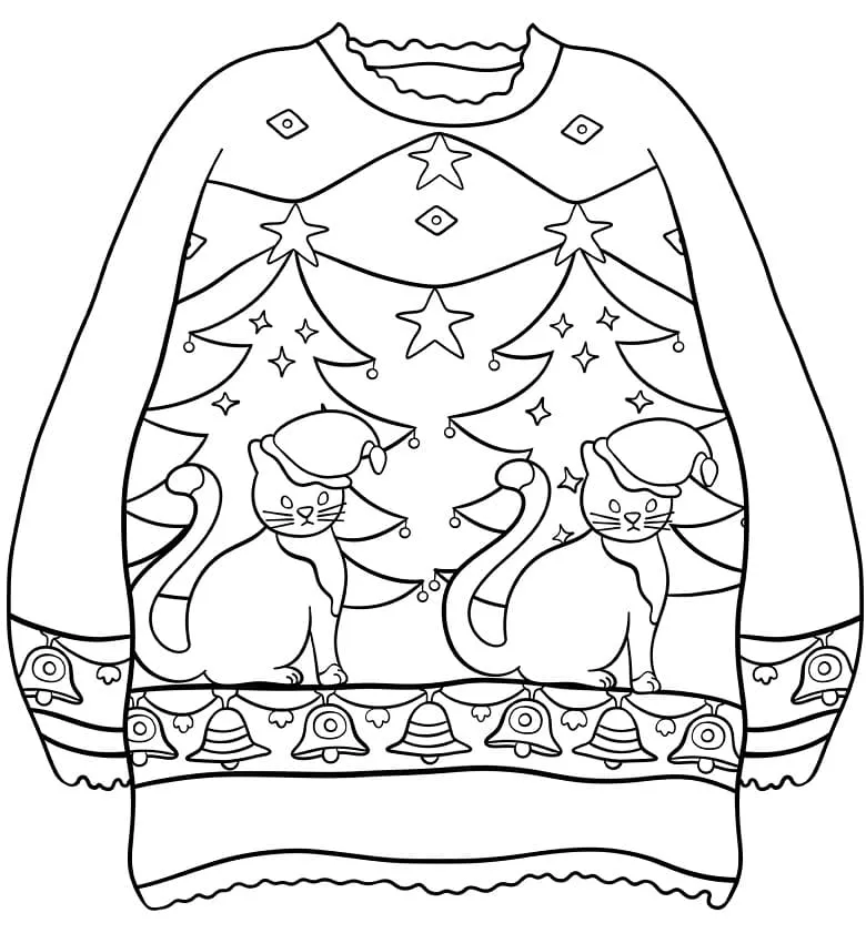 : Druckbar herunterladen Pullover mit Katzen und Tannenbaum Malvorlage