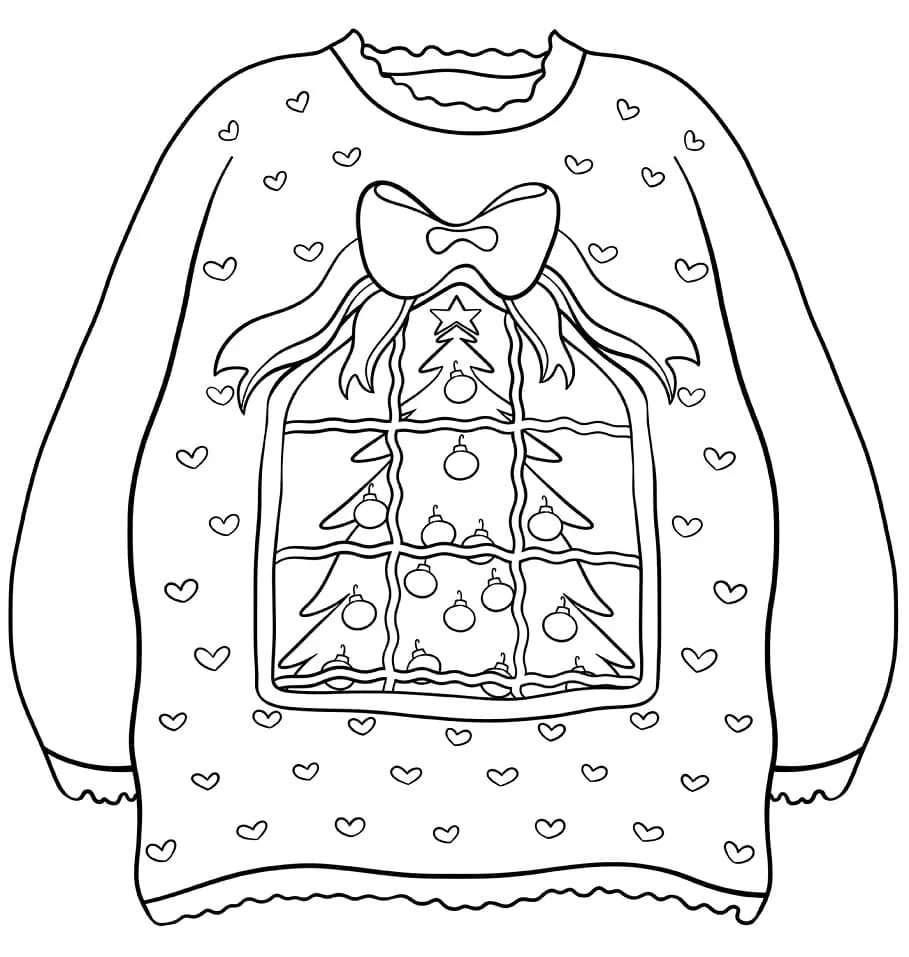 : Druckbar herunterladen Pullover mit Weihnachtsbaum Malvorlage