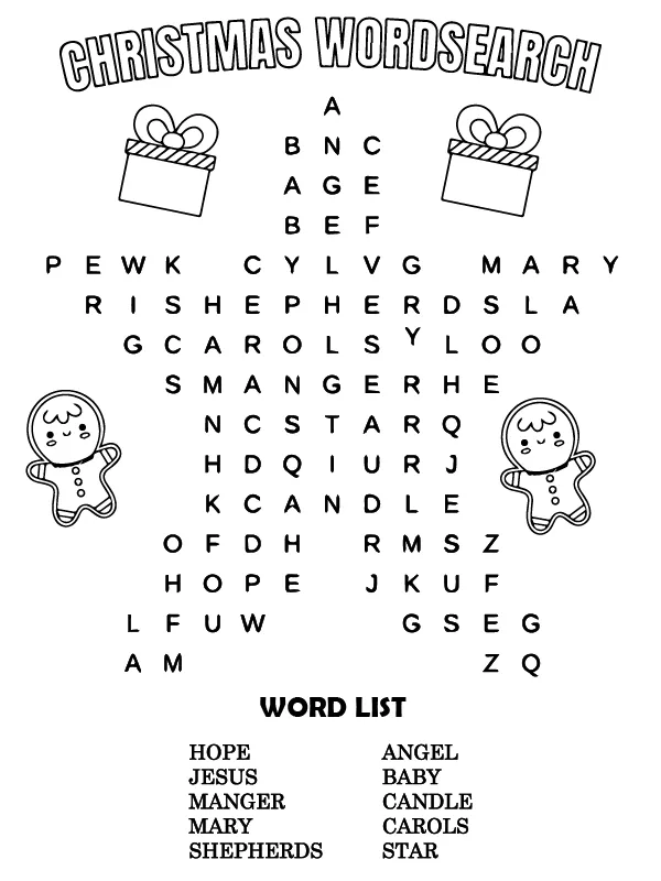 Druckbare Weihnachtswortsuche