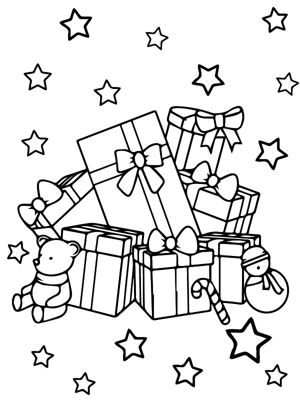 : Druckbar herunterladen Weihnachtsgeschenke Malvorlage