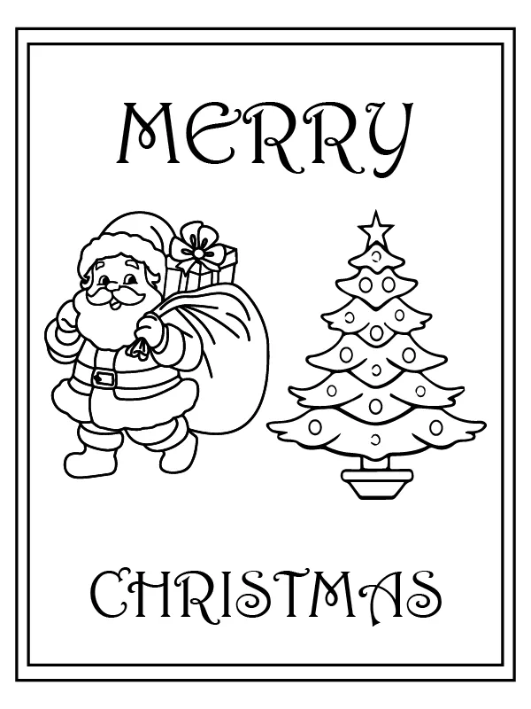 Beschreibung der Färbung : Druckbar herunterladen Kostenlose Weihnachtswunschkarte mit dem Weihnachtsmann Malvorlage