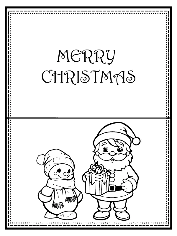 Beschreibung der Färbung : Druckbar herunterladen Einfache Schneemann- und Weihnachtsmann-Weihnachtskarte Malvorlage