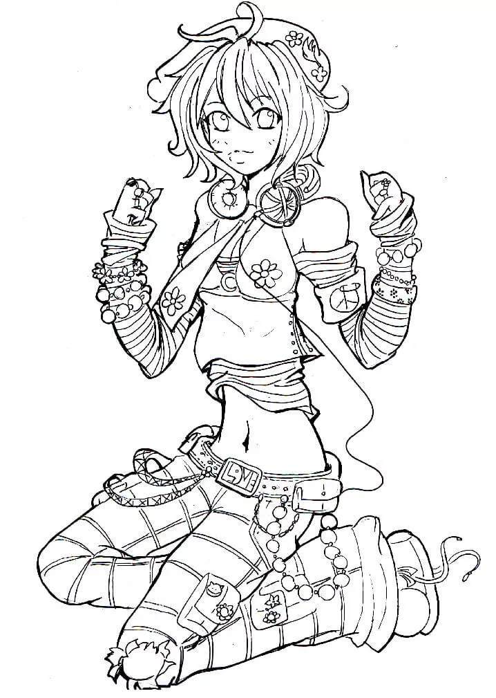 : Druckbar herunterladen Flower Power Anime Girl Malvorlage