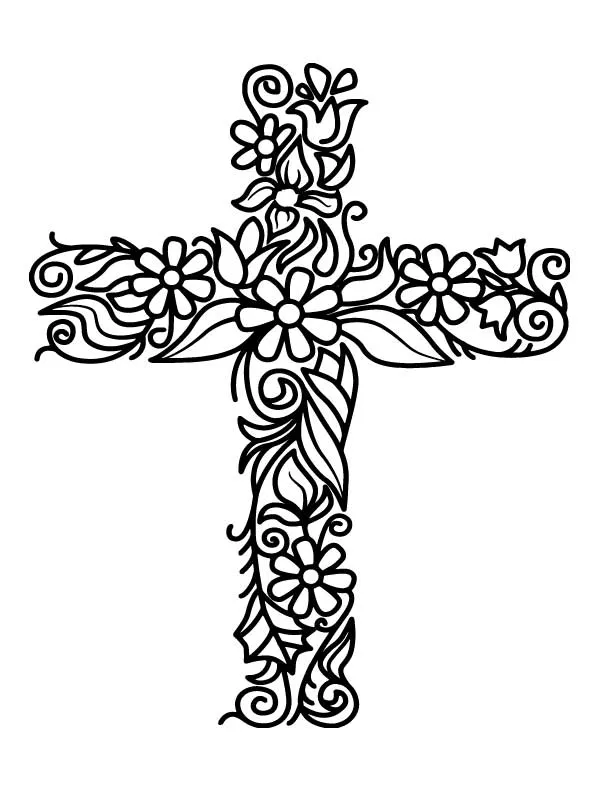 : Druckbar herunterladen Flowery Easter Cross Malvorlage