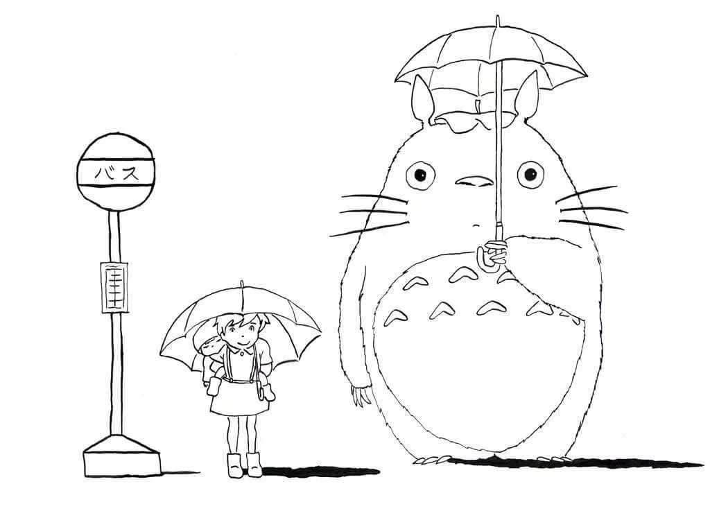 : Druckbar herunterladen Friendly Totoro 4 Malvorlage