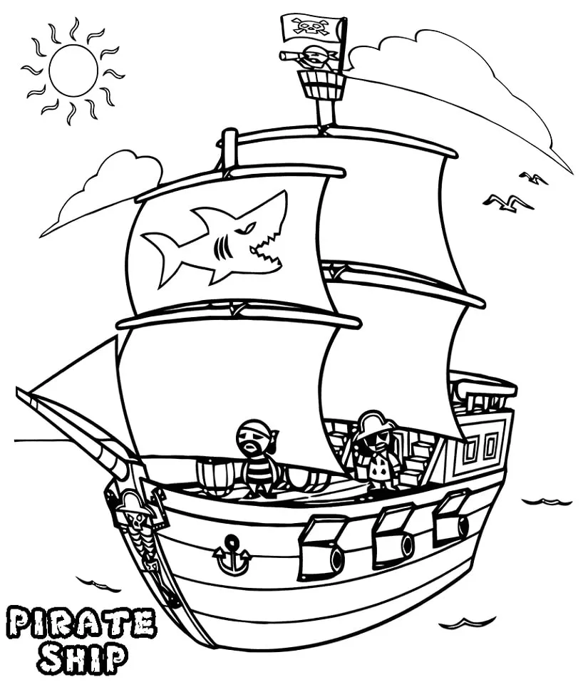 : Druckbar herunterladen Funny Pirate Ship Malvorlage