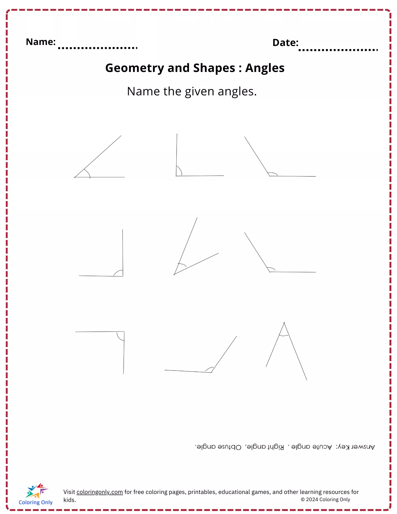 Beschreibung der Färbung : Druckbar herunterladen Geometry and Shapes : Angles free Printable Worksheet Malvorlage