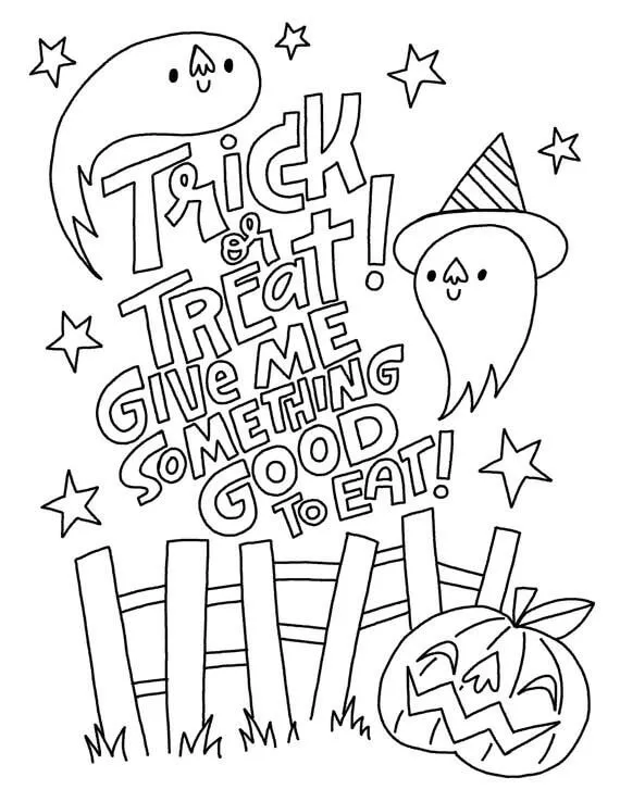 : Druckbar herunterladen Ghost Trick or Treat Malvorlage