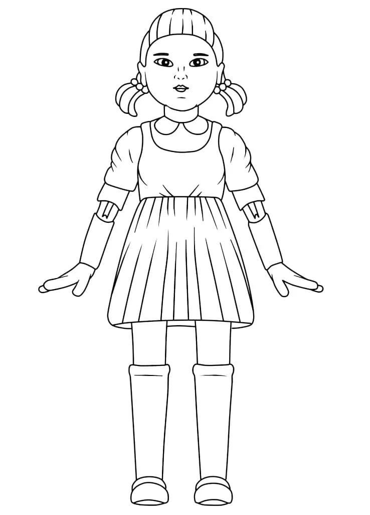 : Druckbar herunterladen Riesiges Puppen-Tintenfisch-Spiel Malvorlage