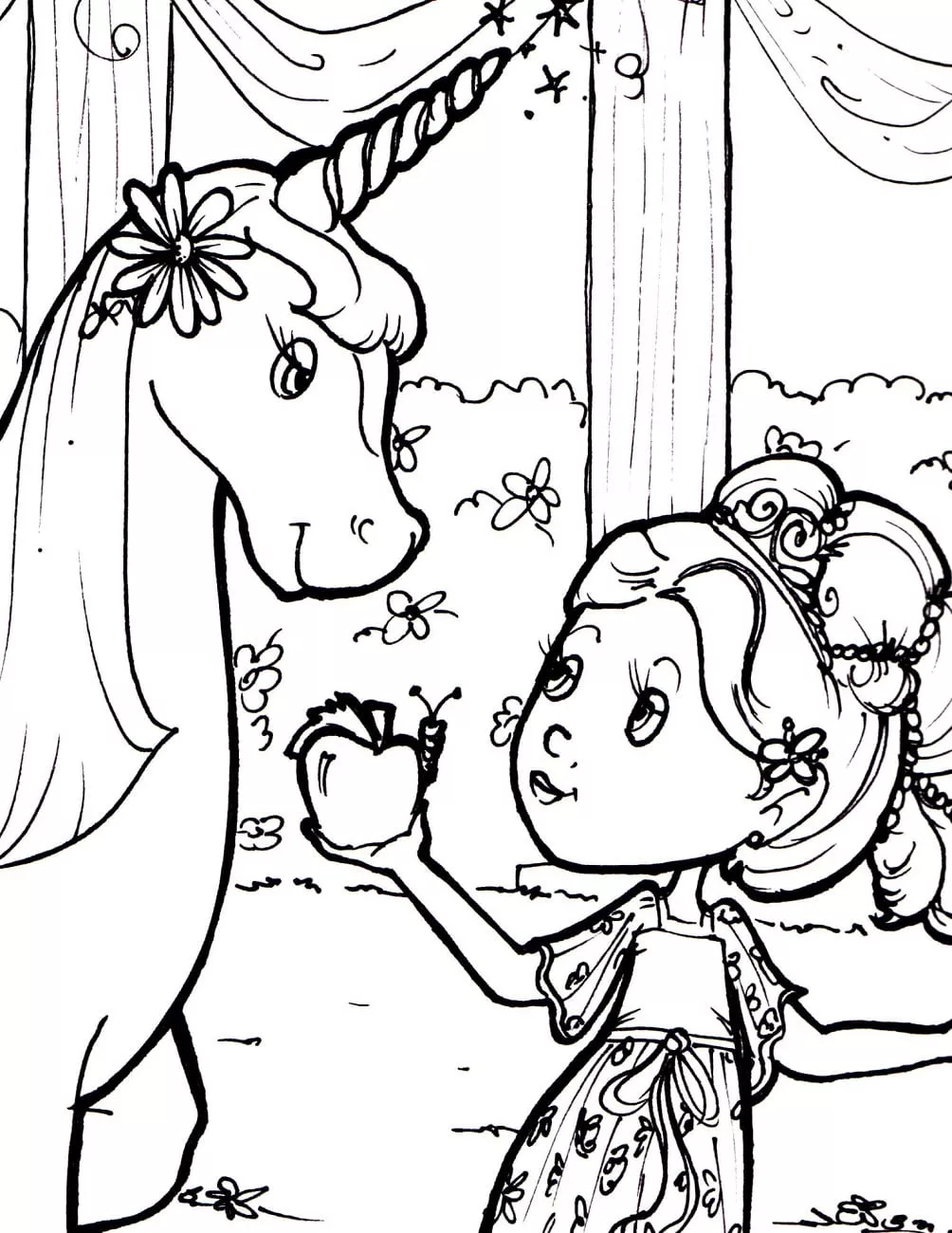 : Druckbar herunterladen Girl Giving Apple For Unicorn Malvorlage