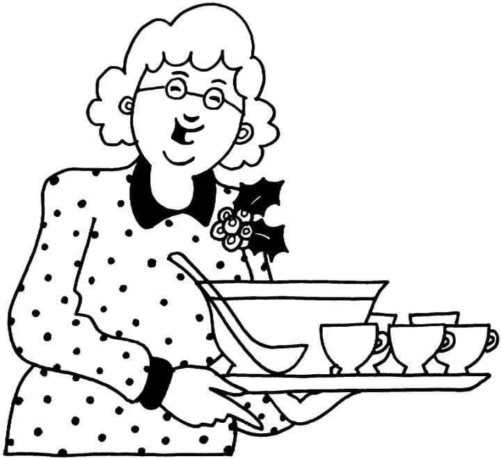 : Druckbar herunterladen Grandmother with Dinner Malvorlage