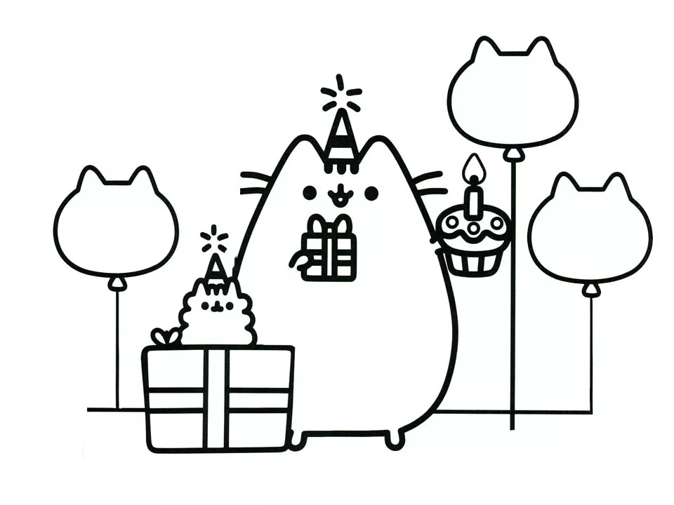 : Druckbar herunterladen Happy Birthday Pusheen Malvorlage