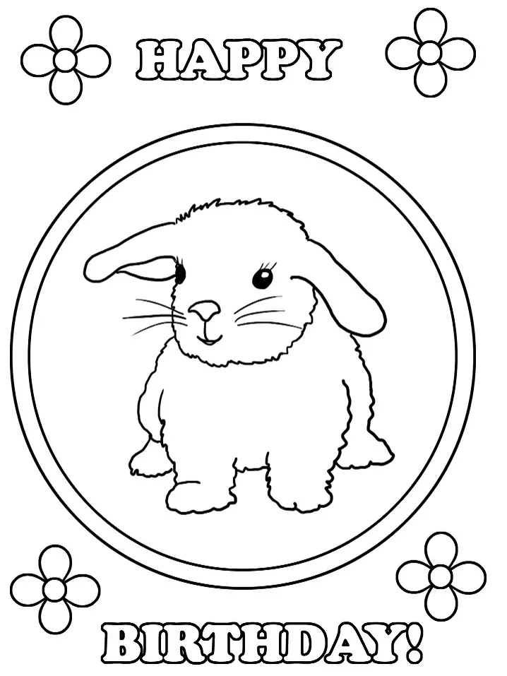 : Druckbar herunterladen Happy Birthday with Bunny Malvorlage